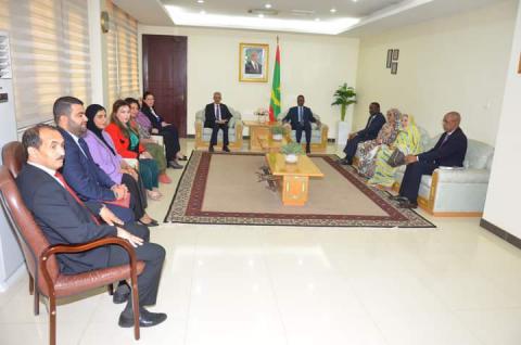الوئام الوطني : استقبل الوزير الأول محمد ولد بلال بمكتبه في الوزارة الأولى السيد محمد ولد أعمر، المدير العام للمنظمة العربية للتربية والثقافة والعلوم، رفقة المشاركات في الندوة الدولية لتعزيز ريادة المرأة وتمكينها من لعب دورها في تحقيق السلام والتنمية المستدامة، المنظمة في بلادنا بالشراكة ما بين المنظمة العربية للتربية والثقافة والعلوم ووزارتي الثقافة والشباب والرياضة والعلاقات مع البرلمان والعمل الاجتماعي والطفولة والأسرة ومركز محيط للتنمية وقضايا المرأة والسلم.