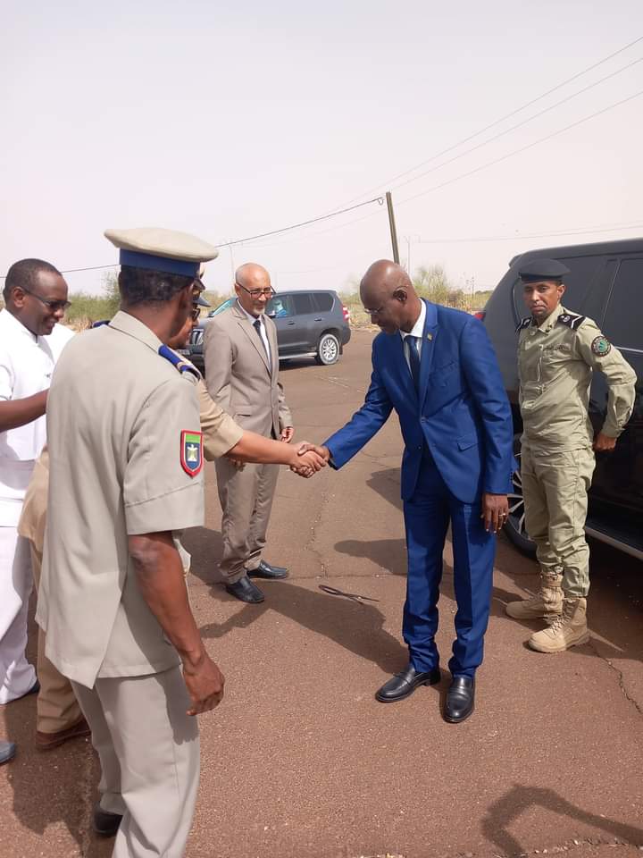 وقد استقبل  الوزير والوفد المرافق له من طرف السيد محمد فال محمد محمود الوالي المساعد لولاية الترارزة محاطا بالسلطات الإدارية والامنية بالولاية.