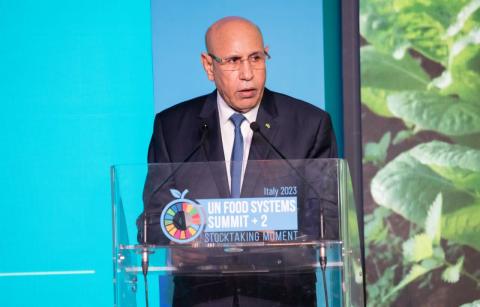 عبر فخامة رئيس الجمهورية السيد محمد ولد الشيخ الغزواني، خلال كلمة له في قمة الأمم لنُظُم الغذاء، ظهر اليوم الاثنين في روما، عن شكره، للسيدة جورجيا ميلوني، رئيسة مجلس وزراء إيطاليا، وكذلك السيد أنطونيو غوتيريش، الأمين العام للأمم المتحدة، على المبادرة بتنظيم هذه القمة، التي اعتبر أنها تشكل جزء من دينامية قمة عام 2021 المتعلقة بالنظم الغذائية.