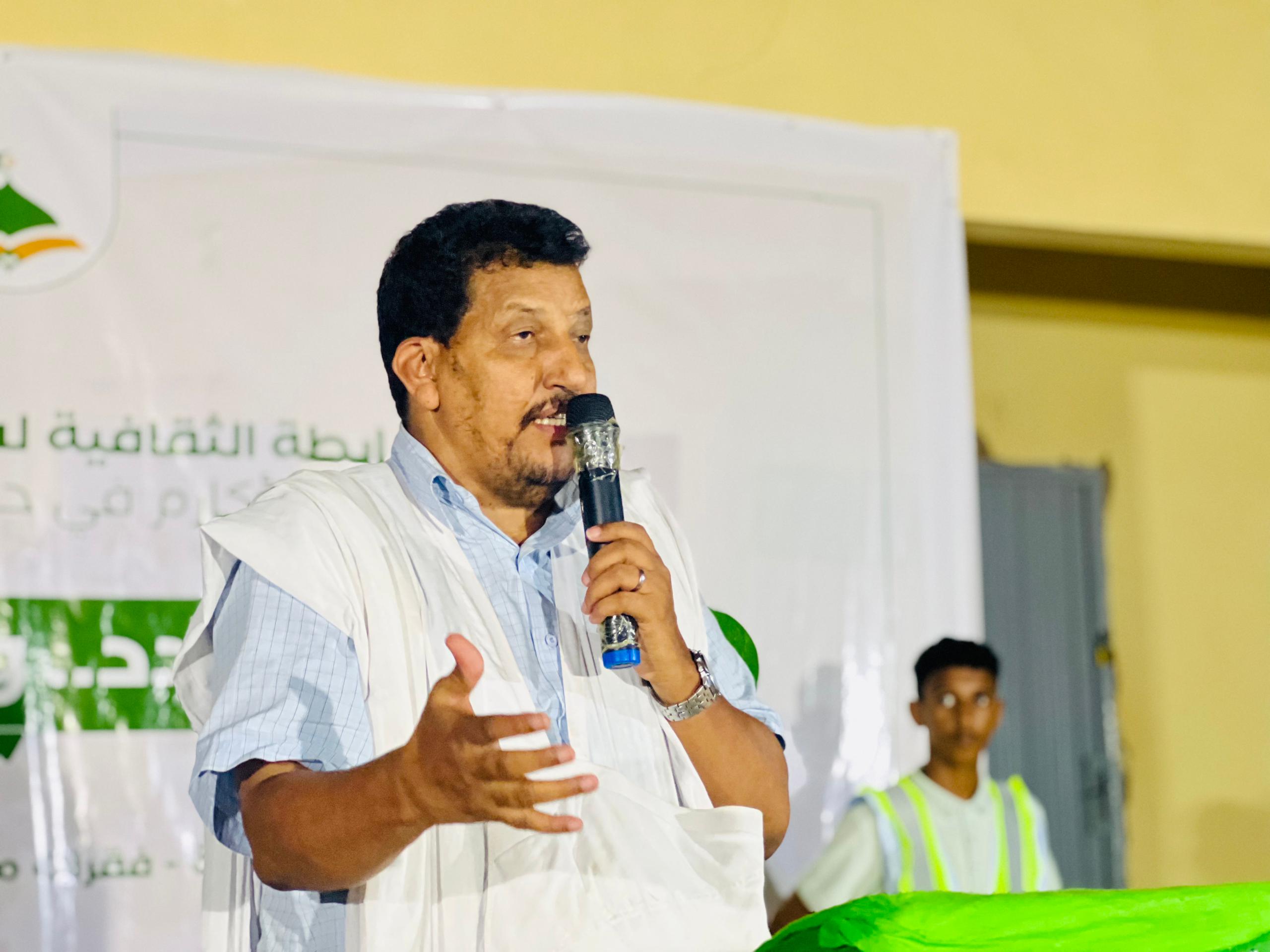 وافتتح الحفل بآيات من الذكر الحكيم مع القارئ محمذن فال دادي شنفت آذان السامعين والحاضرين لتتلوها وقفة للنشيد الوطني مع أشبال الرابطة قبل أن يستمر بالكلمات الرسمية مثل كلمة رئيس الرابطة عبدالله سيدي محمد وكلمة ودادية الوعي والتميز مع رئيسها الدكتور محمد بدو.