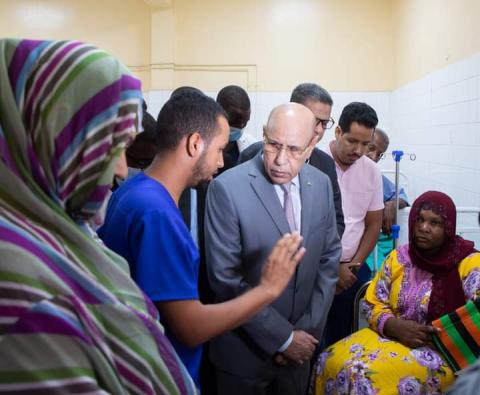 بعد هذه الزيارات التفقدية للمستشفيات الثلاث زار صاحب الفخامة المشاركين في المراجعة الدورية لاستراتيجية قطاع الصحة المنعقدة حاليا في قصر المؤتمرات، و تحدث أمام الحضور، مؤكدا على ضرورة حضور الطواقم الطبية في أماكن عملها، والعناية الخاصة بالمواطن و خصوصا المواطن الضعيف، بالإضافة إلى الاهتمام بنظافة المرافق الصحية.