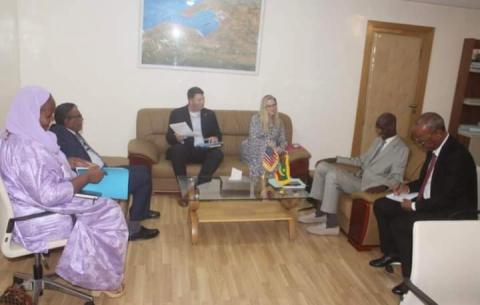 عقد وزير الصيد والاقتصاد البحري السيد مختار الحسينو لام مساء امس بمكتبه بنواكشوط محادثات مع سفيرة الولايات المتحدة الامريكية المعتمدة لدى موريتانياسعادة السيدة سينثيا كيرشت .