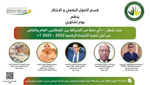 نظمت اتحادية الخدمات يوما تشاوريا تحت شعار " أي نمط من الشراكة بين القطاعين العام والخاص من أجل تنفيذ الأجندة الرقمية 2022 ـ 2025". و تهدف هذه التظاهرة إلى خلق حوار داخلي حول دور القطاع الخاص في تنفيذ الأجندة الرقمية 2022 ـ 2025.