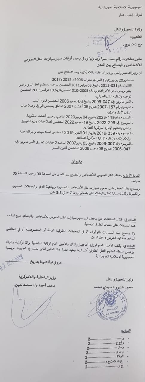 وزارة التجهيز والنقل: مقرر حظر النقل العمومي للأفراد والبضائع- وثيقة