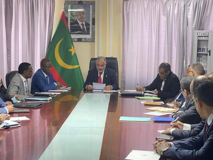 ترأس معالي وزير التجهيز والنقل السيد محمد عالي ولد سيدي محمد، صباح اليوم الثلاثاء الموافق 07 نوفمبر 2023 بقاعة الإجتماعات في مباني الوزارة جلسة عمل ضمت كلا من الأمين العام للوزارة وأعضاء ديوان الوزير والمفتش العام والمديرين المركزيين ، قُدمت خلالها عروض مفصلة عن مستوى تقدم الأشغال في جميع القطاعات ، وأعطى معاليه التوجيهات الصارمة لتذليل الصعوبات التي تعترض الأشغال وتحسين مستوى الأداء .