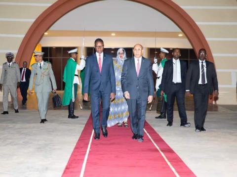 وودع فخامة رئيس الجمهورية لدى مغادرته مطار نواكشوط الدولي (أم التونسي) من طرف معالي الوزير الأول السيد محمد ولد بلال مسعود، والوزير الأمين العام لرئاسة الجمهورية السيد مولاي ولد محمد لقظف،والوزير المستشار برئاسة الجمهورية وعدد من أعضاء الحكومة وقائد الأركان الخاصة لرئيس الجمهورية والمديرة المساعدة لديوان رئيس الجمهورية ووالي نواكشوط الغربية ونائبة رئيسة جهة نواكشوط.