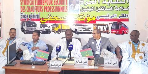 نظمت النقابة الحرة لسلامة السائقين المهنيين مؤتمر صحفي اليوم في مقرها بنواكشوط تحدثت فيه عن أهدافها الأساسية كحقوق منتسبيها حيث قال أمينها العام المساعد إسلكو ولد سيدي أحمد أنهم طالبو وزارة التجهيز والنقل وسلطة تنظيم الطرق بتحسين حقوق منتسبيها من حقوق مادية ومعنوية