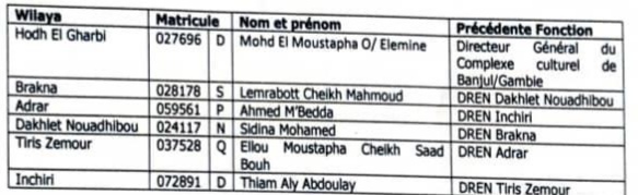 وقع الأمين العام لوزارة التهذيب الوطني السيد سيدي ولد مولاي الزين مذكرة تم بموجبها تحويل وتغيير فى صفوف المديرين الجهويين للتعليم وجاء التغيير على النحو التالي :
