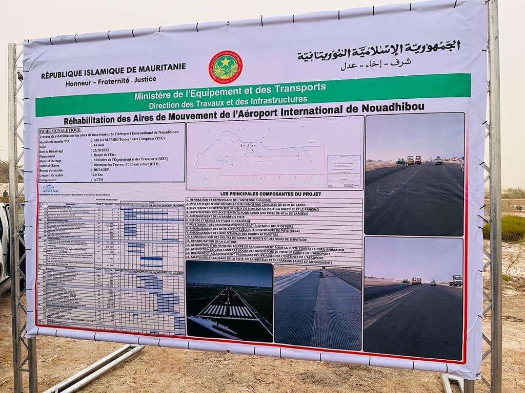 وأوضح وزير التجهيز والنقل السيد محمد عالي ولد سيد محمد، في كلمته، أن إعادة تأهيل مدرج مطار انواذيبو الدولي، الذي هو أقدم مطار في البلاد وشاهد على كثير من تاريخها المعاصر، يأتي بعد أن عانى منذ بعض الوقت من عدة اختلالات فنية وتصدعات في مدرج الهبوط، ما أدى إلى توقف الرحلات إلى مدينة نواذيبو في الآونة الأخيرة.