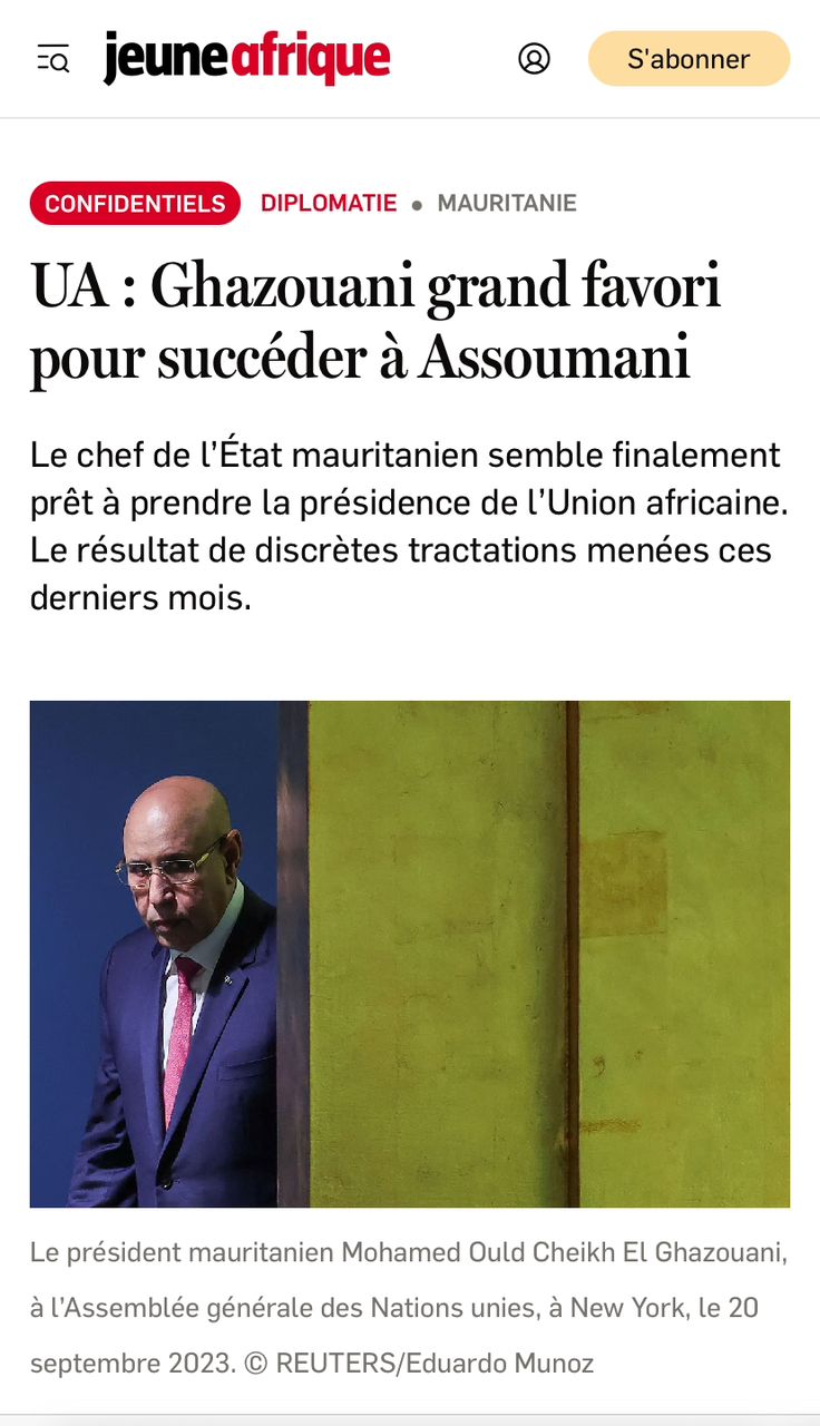 وبحسب صحيفة "جون أفريك" فإن لدى القادة الأفارقة بشكل عام توجها لإسناد قيادة الاتحاد إلى الرئيس الموريتاني.