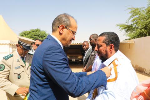 وشح مفوض حقوق الإنسان والعمل الإنساني والعلاقات مع المجتمع المدني، السيد الشيخ أحمدو ولد أحمد سالم ولد سيدي، باسم رئيس الجمهورية، السيد محمد ولد الشيخ الغزواني، اليوم الاثنين بمقر المفوضية في نواكشوط، الأمين العام لجمعية اليد العليا الدكتور محمد عبد الرحمن ولد الصبار ، بميدالية شرف من الدرجة الأولى