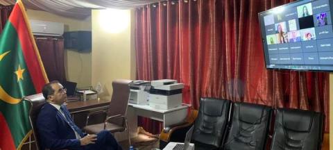 مثل اللجنة الانتخابية الموريتانية في الجلسة الافتتاحية عبر تطبيق ZOOM،الناطق الرسمي باسم اللجنة : محمد تقي الله الأدهم .