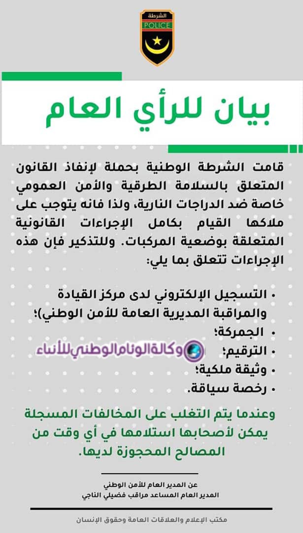 ودعت الشرطة مالكي الدراجات النارية إلى ضرورة تسوية وضعيات مركباتهم عبر استكمال الإجراءات القانونية المطلوبة، والتي تشمل: