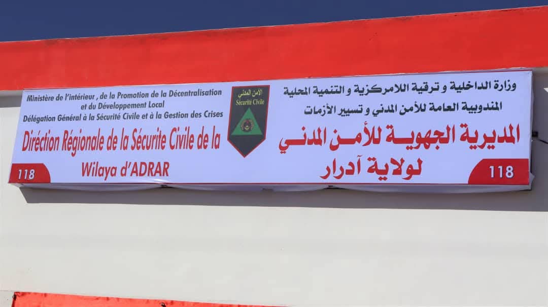دشن معالي وزير الداخلية وترقية اللامركزية والتنمية المحلية، السيد محمد أحمد ولد محمد الأمين، اليوم الثلاثاء في مدينة أطار، بحضور المندوب العام للأمن المدني وتسيير الأزمات، اللواء أبو المعالي الهادي سيدي ولد أعمر، مقرا للمديرية الجهوية للأمن المدني في ولاية آدرار ومركزا للإنقاذ بمدينة أطار، وذلك في إطار الفعاليات المخلدة للذكرى الخامسة والستين لعيد الاستقلال الوطني.