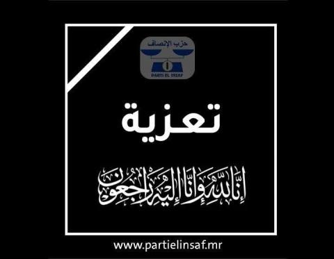 وهي مناسبة، نعبر فيها، باسم حزب الإنصاف عن تعازينا الخالصة لنائبة رئيس الحزب وكل أفراد عائلتها الكريمة ولجميع سكان ولاية كوركول وجميع الموريتانيين، ونتمنى من الله أن يتغمد الفقيد برحمته الواسعة وأن يلهم ذويه ومحبيه الصبر والسلوان.