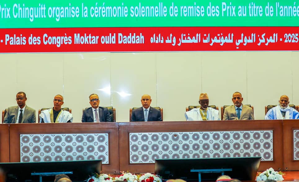 أشرف فخامة رئيس الجمهورية، السيد محمد ولد الشيخ الغزواني، اليوم الاثنين بالمركز الدولي للمؤتمرات “المختار ولد داداه”، على حفل توزيع جوائز شنقيط للعام 2025.
