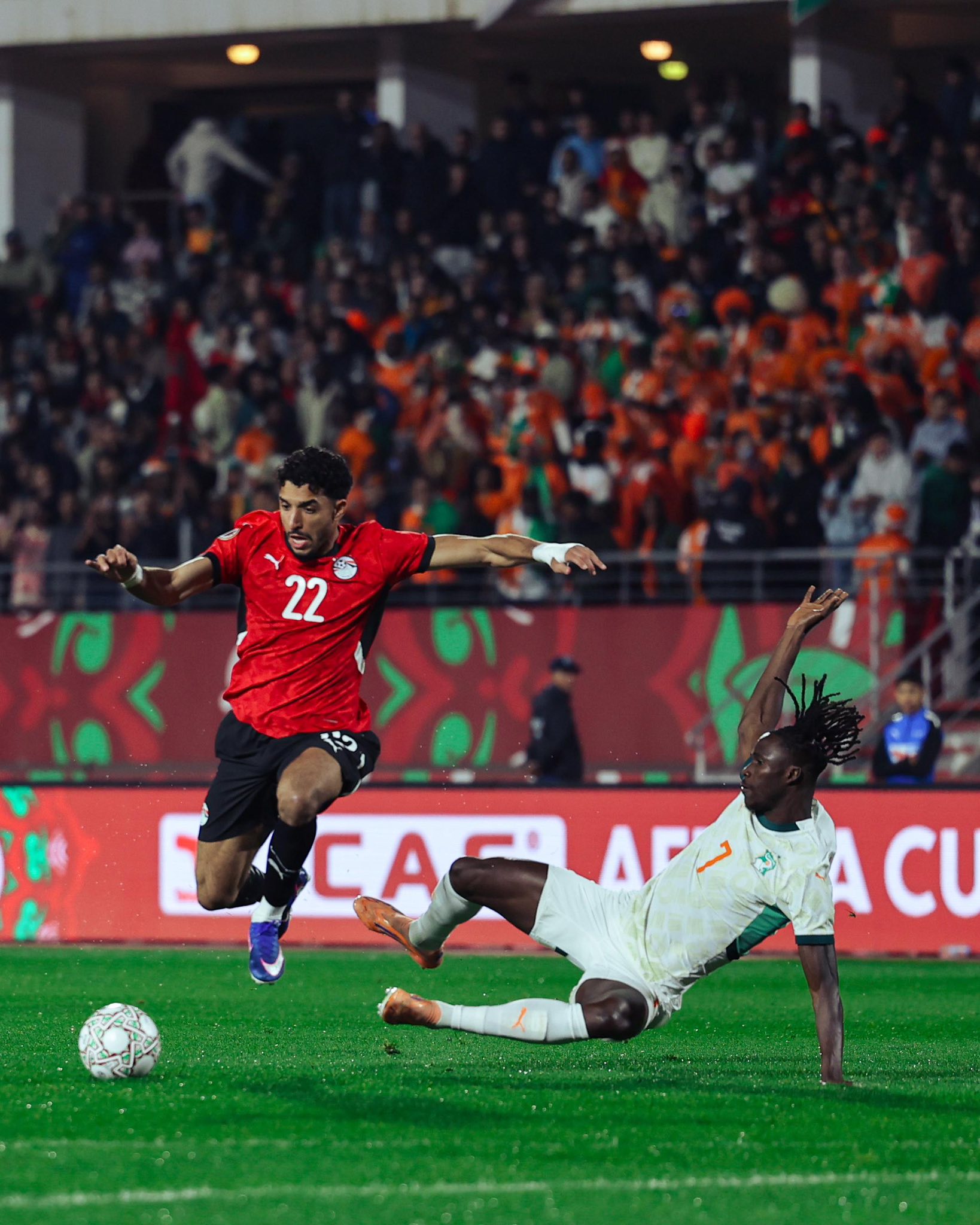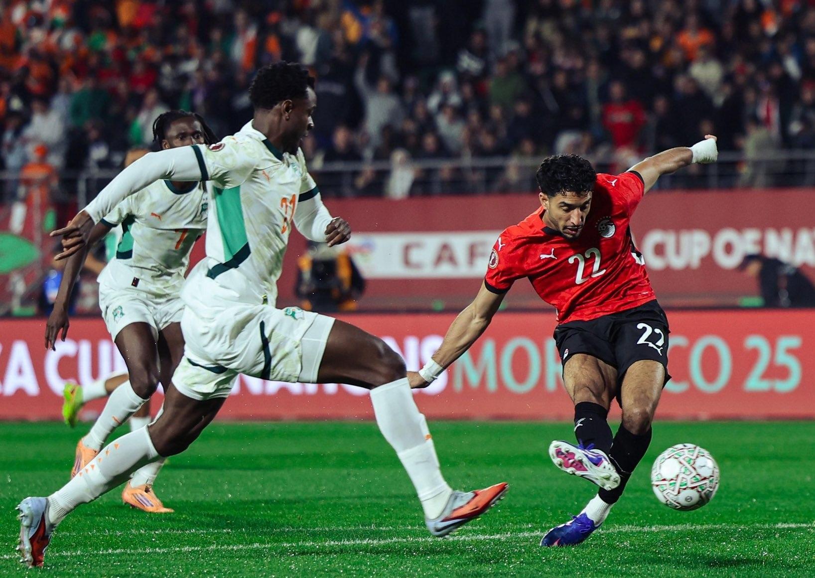 ودخل “الفراعنة” اللقاء بقوة، حيث افتتح عمر مرموش التسجيل مبكرًا في الدقيقة الرابعة، مستغلًا تمريرة متقنة من إمام عاشور، وضعها بتسديدة أرضية في شباك الحارس الإيفواري. وواصل المنتخب المصري تفوقه، ليعزز رامي ربيعة النتيجة بالهدف الثاني في الدقيقة 32.
