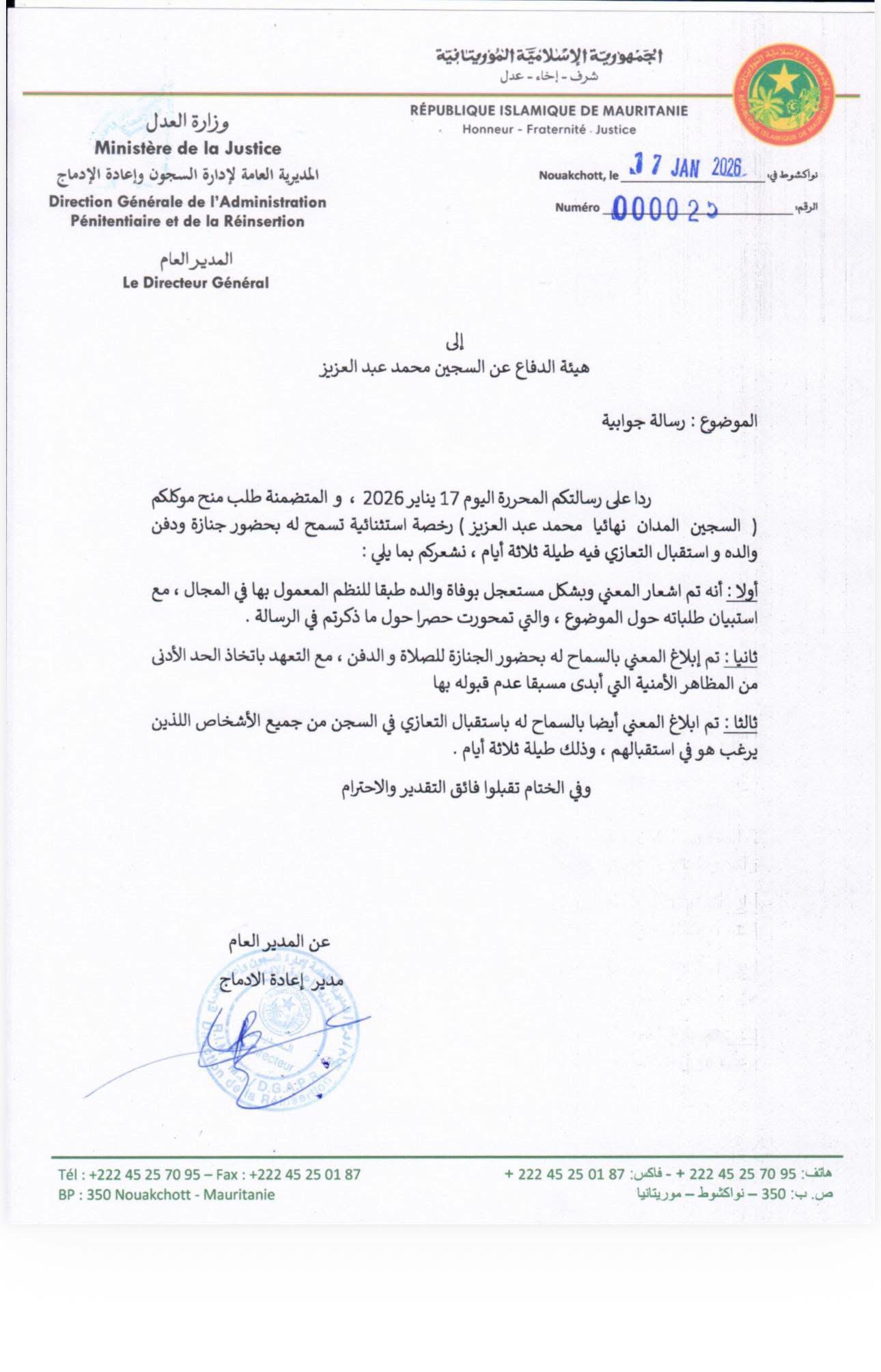 هذه الخطوة، في جوهرها، تعكس تغليب الاعتبارات الإنسانية في لحظة بالغة الحساسية، حيث يشكل فقدان الوالد حدثا إنسانيا استثنائيا لا يمكن فصله عن القيم الاجتماعية والدينية الراسخة في المجتمع الموريتاني، التي تولي لمشاعر البرّ وصلة الرحم ومواساة أهل المصاب مكانة سامية.