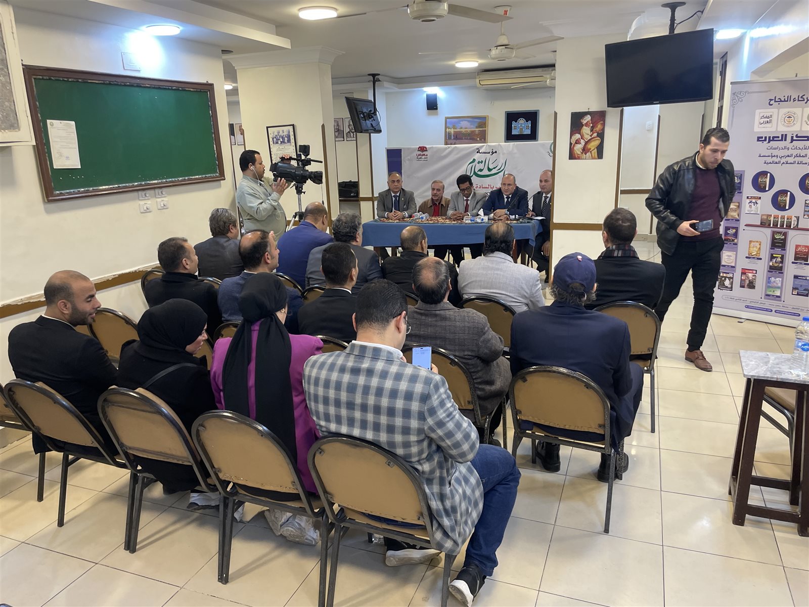 مقرر الندوة الكاتب الصحفي محمد فتحي الشريف، رئيس مركز العرب للأبحاث والدراسات، والدكتور أبو الفضل الإسنّاوي، رئيس مركز رع للأبحاث والدراسات، والدكتور محمد يحيى غيدة، نائب رئيس مركز العرب للأبحاث والدراسات
