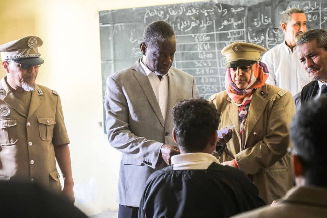 وقد أدى الأمين العام، رفقة عدد من أطر القطاع زيارة ميدانية لولايات نواكشوط الثلاث، حيث زار ثانوية توجنين رقم1 وثانوية عرفات رقم 2 وثانوية الامتياز رقم1 وثانوية البنين رقم 1، واطلع بشكل مباشر على سير المسابقة والظروف التنظيمية التي بجري فيها التنافس.