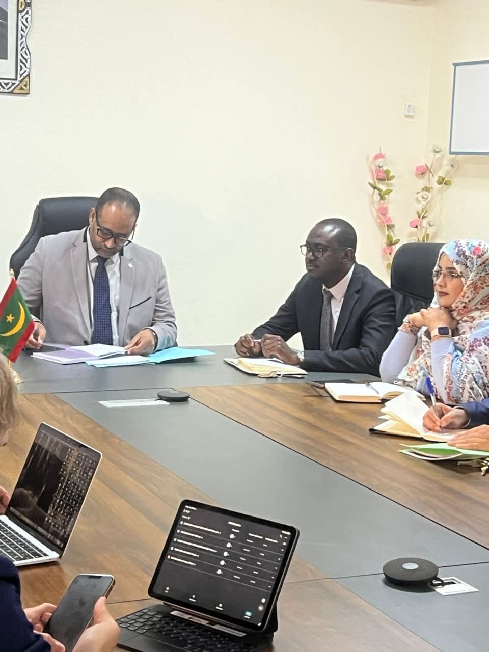 بحث المدير العام لمركز الاستطباب الوطني، شريف جدو ميني، مع وفد إسباني رفيع من المستشفى الجامعي San Roque بجزر الكناري، سبل تعزيز التعاون الصحي بين الجانبين، وذلك خلال اجتماع عُقد اليوم بمقر الإدارة العامة. وتركزت المباحثات على مشروع اتفاقية تعاون ثنائية تشمل دعم الجراحة الروبوتية، وتكوين الكوادر الطبية، ونقل الخبرات، وإيفاد بعثات طبية متخصصة، إضافة إلى الاستشارات والتكوين عن بُعد. ويأتي هذا التعاون في إطار تطوير الشراكات الدولية لتحسين جودة الخدمات الصحية في موريتانيا.