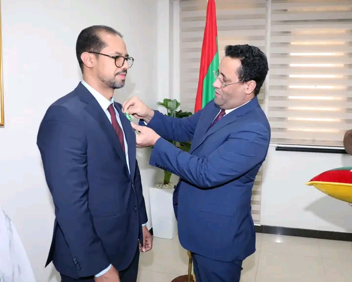 بوسام فارس من نظام الاستحقاق الوطني السيد محمد عبد الله سيدي محمد اعل طالب مدير الإيداع والتقييد بصندوق الإيداع والتنمية.