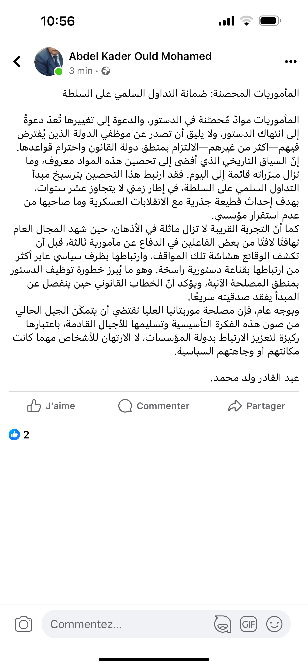 نقلا عن صفحة الدبلوماسي عبد القادر ولد محمد