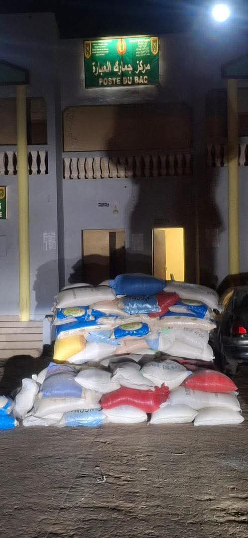 أحبطت دورية من مركز جمارك العبّارة التابع للإدارة الجهوية للجمارك بروصو محاولة تهريب كمية معتبرة من الأرز، عقب متابعة ورصد ميدانيين من طرف أفراد المركز استنادًا إلى معلومات دقيقة، حيث انتهت العملية بتدخل مباغت ومحكم في الجانب الموريتاني من الضفة، أسفر عن إفشال المحاولة ووضع اليد على الشحنة. وقد بلغت الكمية المحجوزة 4 أطنان و600 كلغ، موزعة على 88 خنشة (50 كلغ) و4 خنشات (25 كلغ)، وتم الشروع فورًا في تحرير المحضر واتخاذ الإجراءات القانونية المعمول بها.