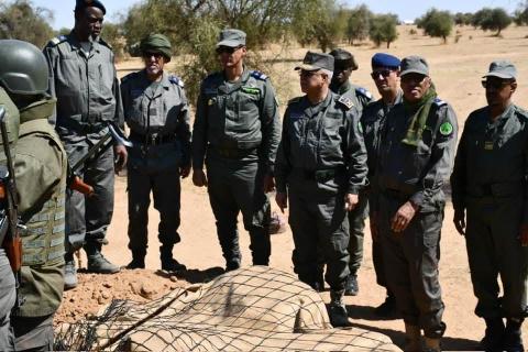 و التدخل، المكلفة بالدفاع عن منطقة مدبوگُ الحدودية رفقة وفد رفيع المستوى من قيادة أركان الحرس الوطني، بعد استعراضه وحدة قدمت له تحية الشرف التقى بعناصر الوحدة التي تلقى شروحا وافية من قائدها عن ظروف عملهم و الإمكانيات الموضوعة تحت تصرفهم والعوائق المحتملة في طريق نجاح مهمتهم وأكد الفريق قائد الأركان أن هذه الزيارة تأتي من أجل الوقوف ميدانيا على ظروفهم و التغلب على العوائق التي تقف أمام نجاح مهامهم