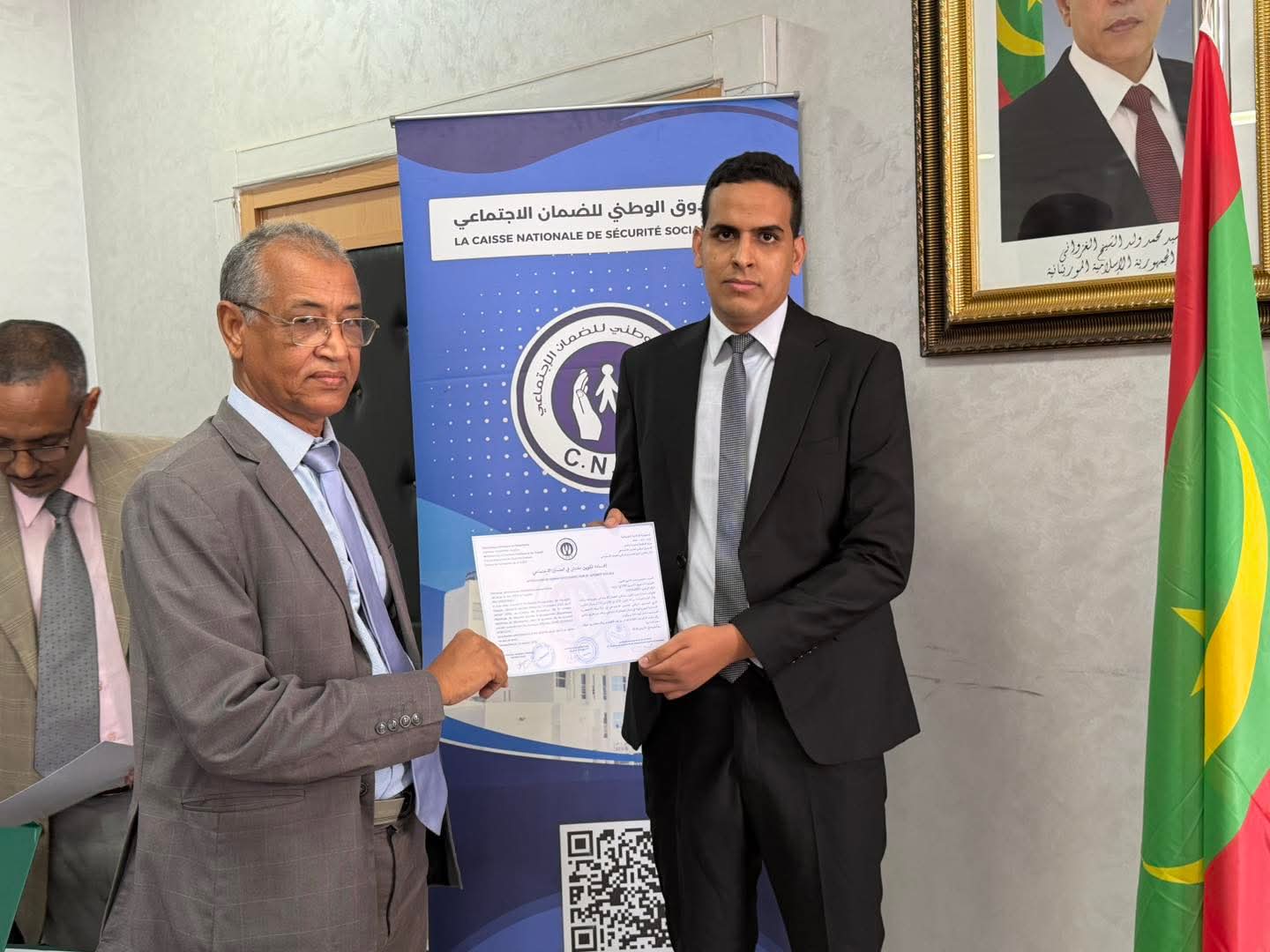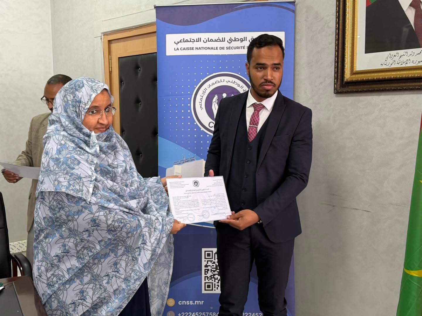 في أجواء رسمية مميزة، نُظم اليوم الثلاثاء 10 فبراير 2026، حفل تخرج دفعة المفتشين لدى الصندوق الوطني للضمان الاجتماعي، بحضور المدير العام الدكتور محمد الأمين ولد أبي ولد الشيخ الحضرامي، والمدير العام المساعد سيد عبد الله ولد الطالب مصطفى، وأعضاء الطاقم الإداري للمؤسسة، إلى جانب الأساتذة المشرفين على التكوين.