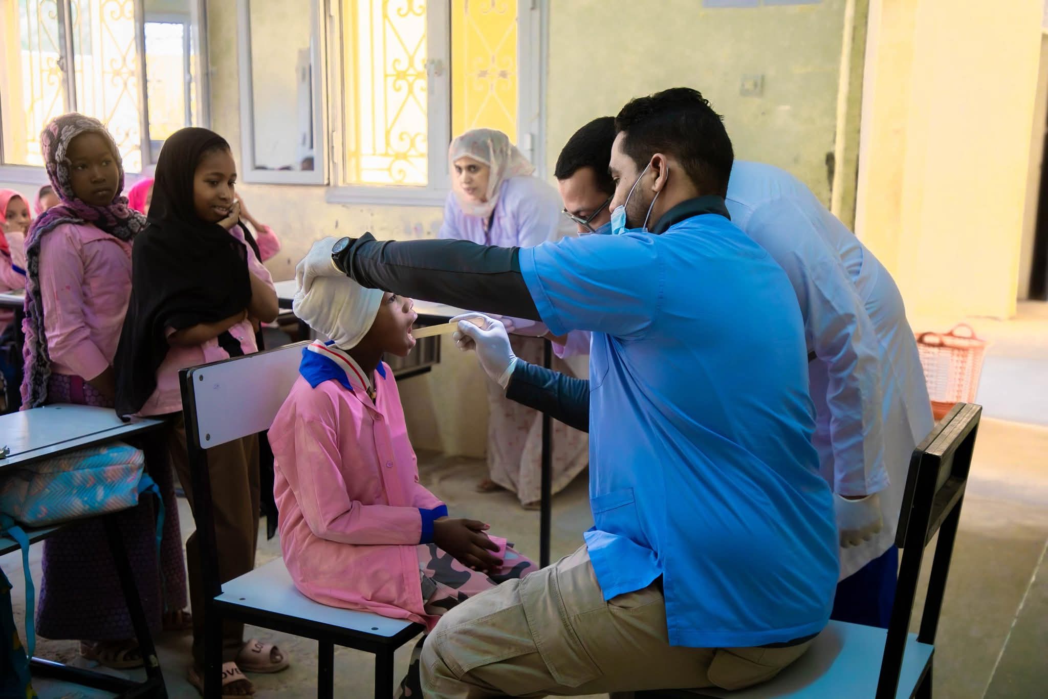 ويشمل الكشف أمراض العيون والأسنان وسوء التغذية كما يشمل كافة تلاميذ المدارس العمومية والإعداديات والثانويات في مقاطعة تفرغ زينة