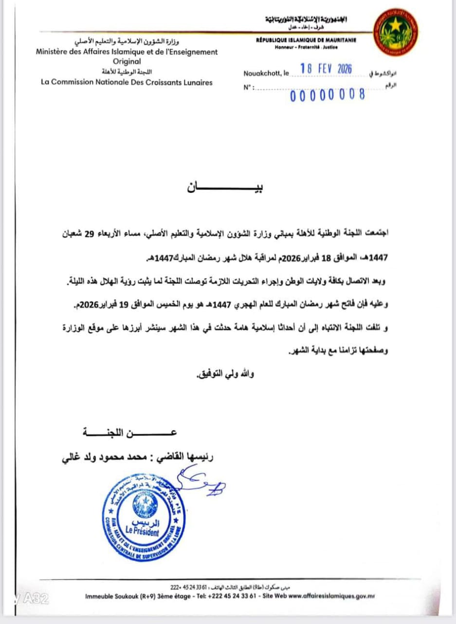 وبعد الاتصال بكافة ولايات الوطن وإجراء التحريات اللازمة توصلت اللجنة لما يثبت رؤية الهلال هذه الليلة.