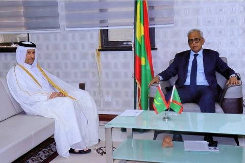 عقد معالي وزير الشؤون الاقتصادية والتنمية، الدكتور عبد الله سليمان الشيخ سيديا، صباح اليوم الخميس بمكتبه في نواكشوط، جلسة مباحثات مع سعادة السيد شاهين بن علي الكعبي، سفير دولة قطر المعتمد لدى بلادنا.