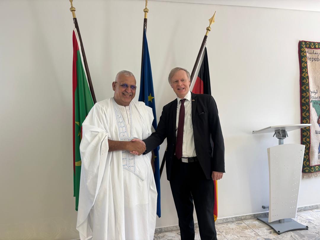 عقد رئيس جهة اترارزة، الأستاذ محمد ولد الشيخ، ظهر اليوم، اجتماعًا مع سعادة سفير جمهورية ألمانيا الاتحادية المعتمد لدى موريتانيا الدكتور فلوريان رايندل، بحضور نائب السفير.