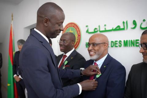 وشّح معالي وزير المعادن والصناعة، السيد تيام تيجاني، باسم فخامة رئيس الجمهورية، السيد محمد ولد الشيخ الغزواني، ، عددًا من عمال الشركة الوطنية للصناعة ومناجم "اسنيم" ، ، تقديرًا لما بذلوه من جهود في خدمة القطاع وتعزيز أدائه، وتجسيدًا للعناية التي توليها السلطات العمومية للكفاءات الوطنية، وتحفيزًا لها على مواصلة العطاء والإسهام في التنمية الاقتصادية للبلاد.