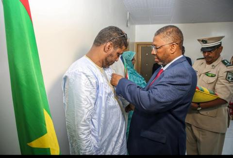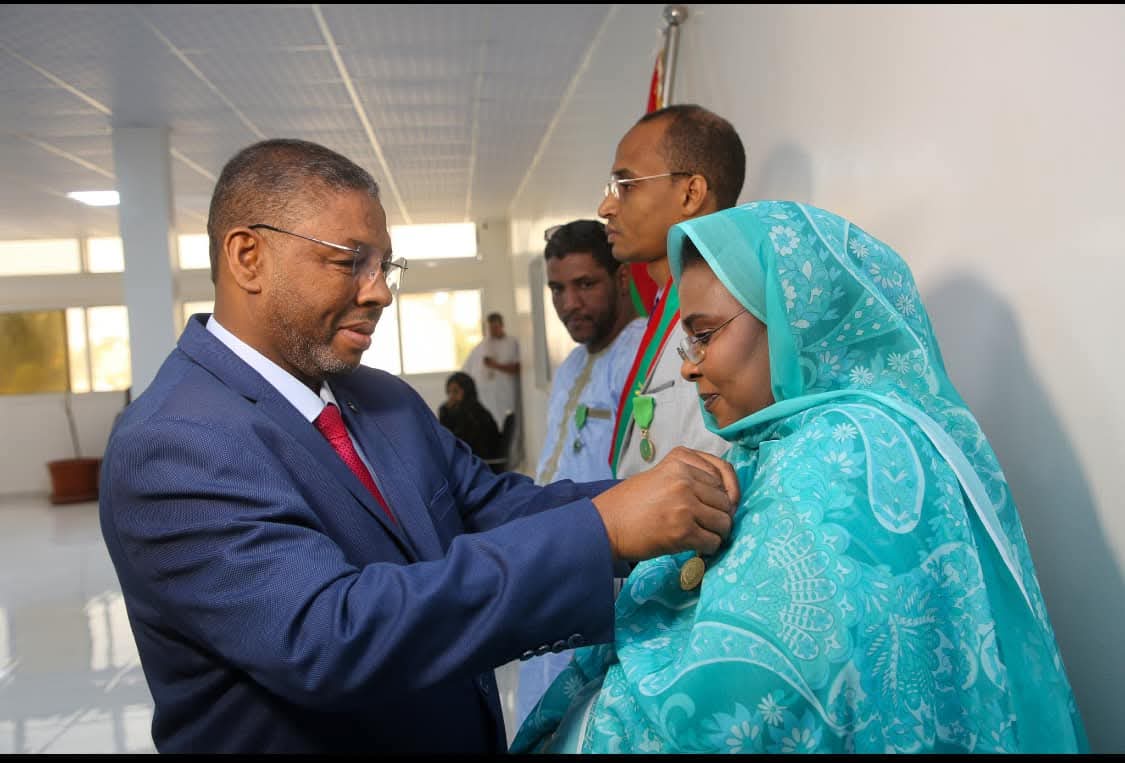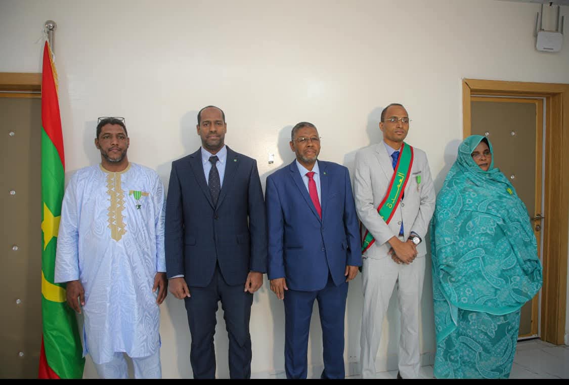 وشح معالي الوزير المنتدب لدى وزير الداخلية وترقية اللامركزية والتنمية المحلية، المكلف باللامركزية والتنمية المحلية, السيد يعقوب ولد سالم فال، باسم فخامة رئيس الجمهورية السيد محمد ولد الشيخ الغزواني، اليوم الخميس بمقر الوزارة، موظفين في القطاع، وذلك بمناسبة الذكرى الخامسة والستين لعيد الاستقلال الوطني.