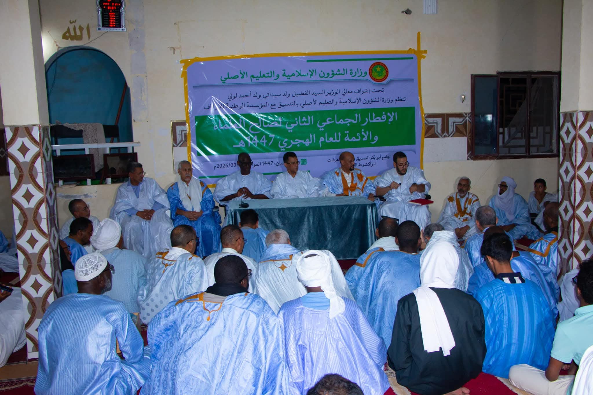 أشرف وزير الشؤون الإسلامية والتعليم الأصلي، الفضيل ولد سيداتي ولد أحمد لولي، مساء الثلاثاء بجامع أبي بكر الصديق في عرفات، على حفل إفطار نظمته الوزارة بالتنسيق مع المؤسسة الوطنية للأوقاف لصالح العلماء والأئمة.