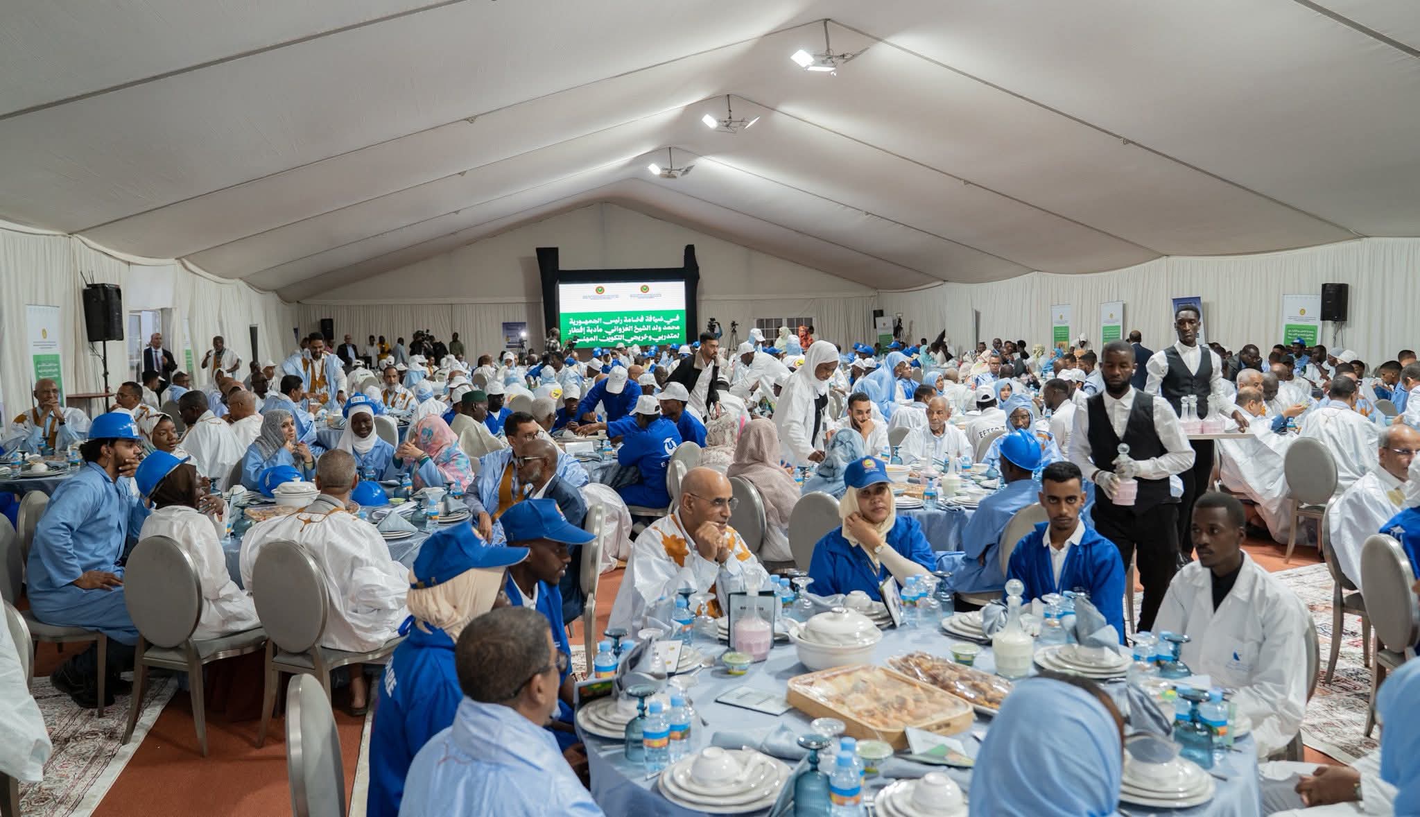 شارك رئيس الجمهورية، السيد محمد ولد الشيخ الغزواني، مساء اليوم، مائدة الإفطار مع متدربي وخريجي التكوين المهني، وذلك بالمركز العالي للتعليم التقني في نواكشوط.
