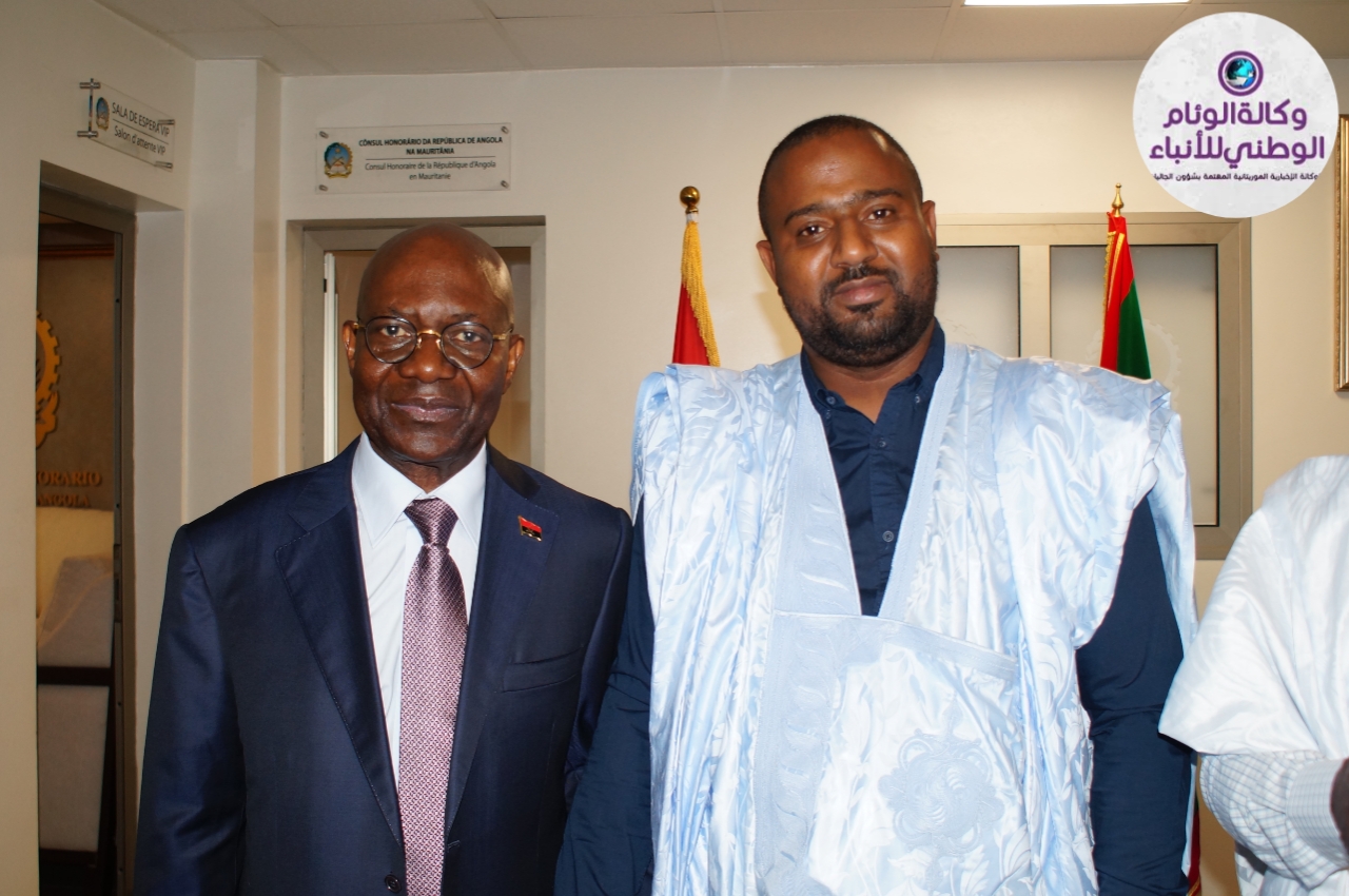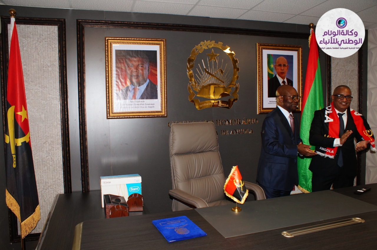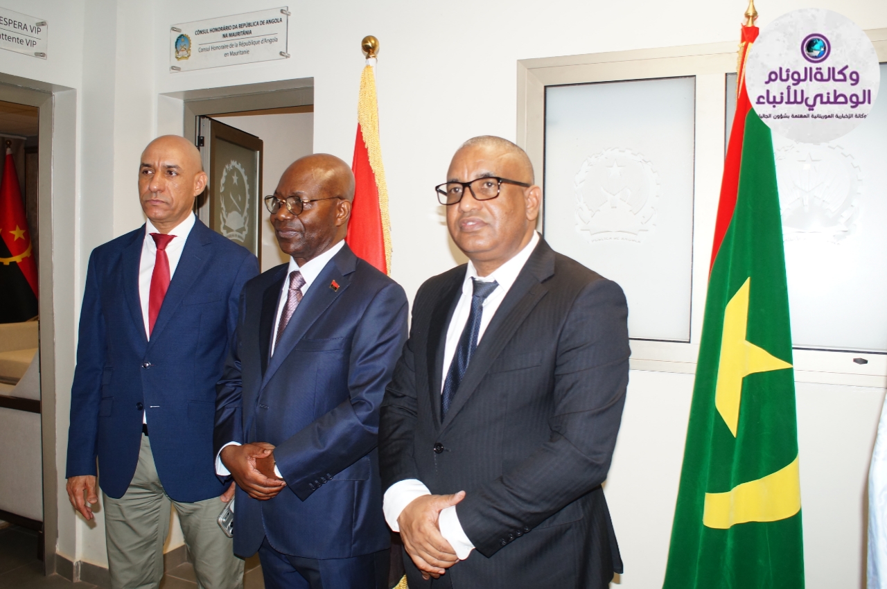 نواكشوط : أشرف على تدشين القنصلية الأنجولية في موريتانيا سعادة سفير انجولا في السينغال السيد أدرو بينتو رفقة صاحب السعادة السيد أحمدو ولد بوفشة القنصل الفخري لإنحولا في موريتانيا وذلك بحضور وفد رسمي من الشخصيات البارزة من أبرزها رئيس الجالية الموريتانية المقيمة في انكولا الحسن ولد جدو والنائب عن مقاطعة باركيول السيد موسي ولد الدده