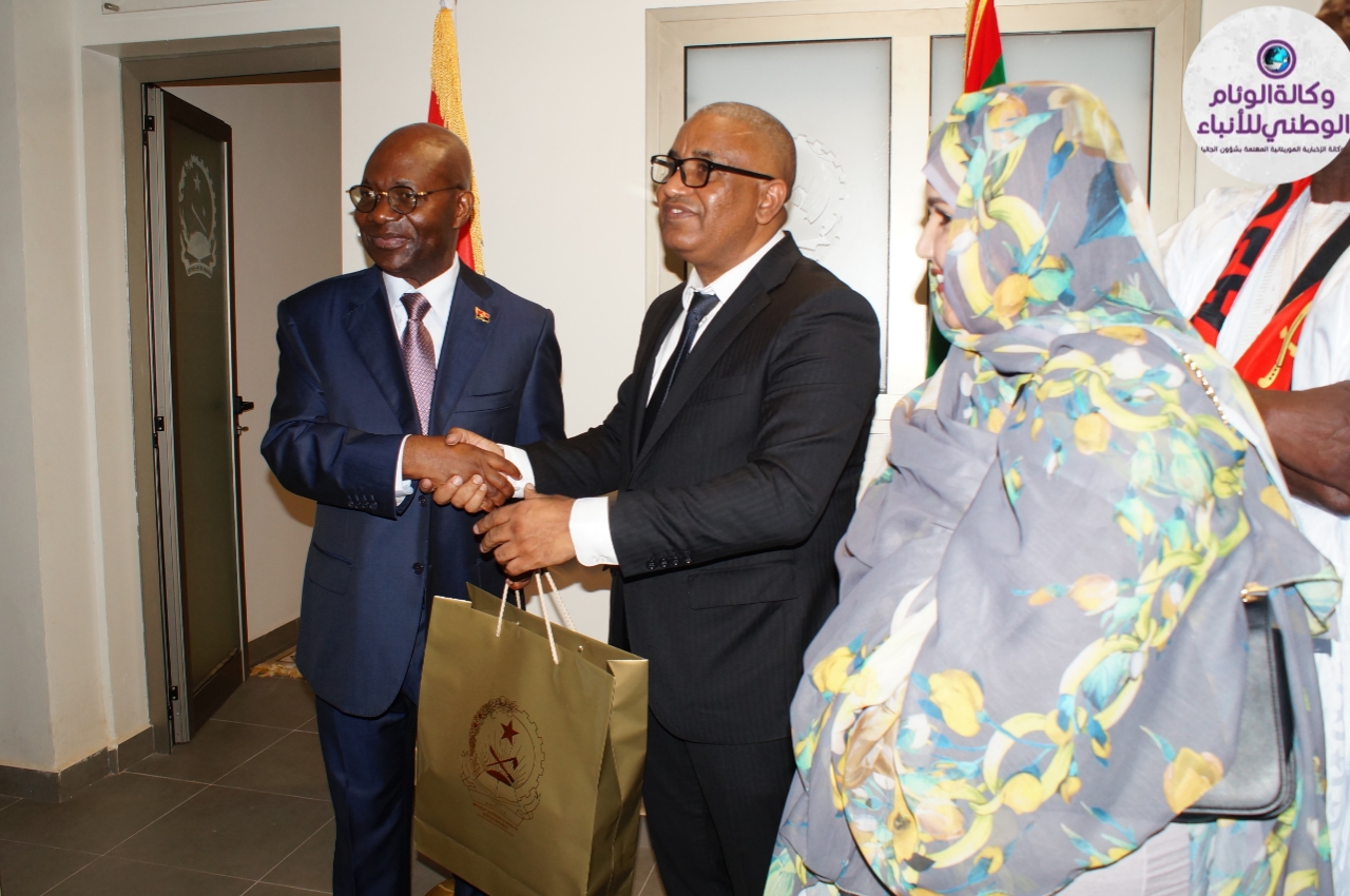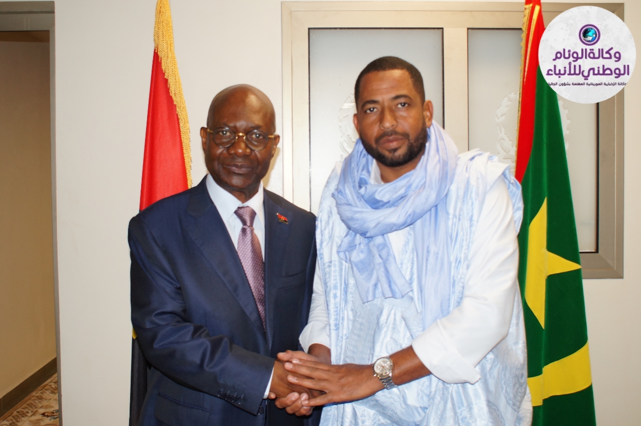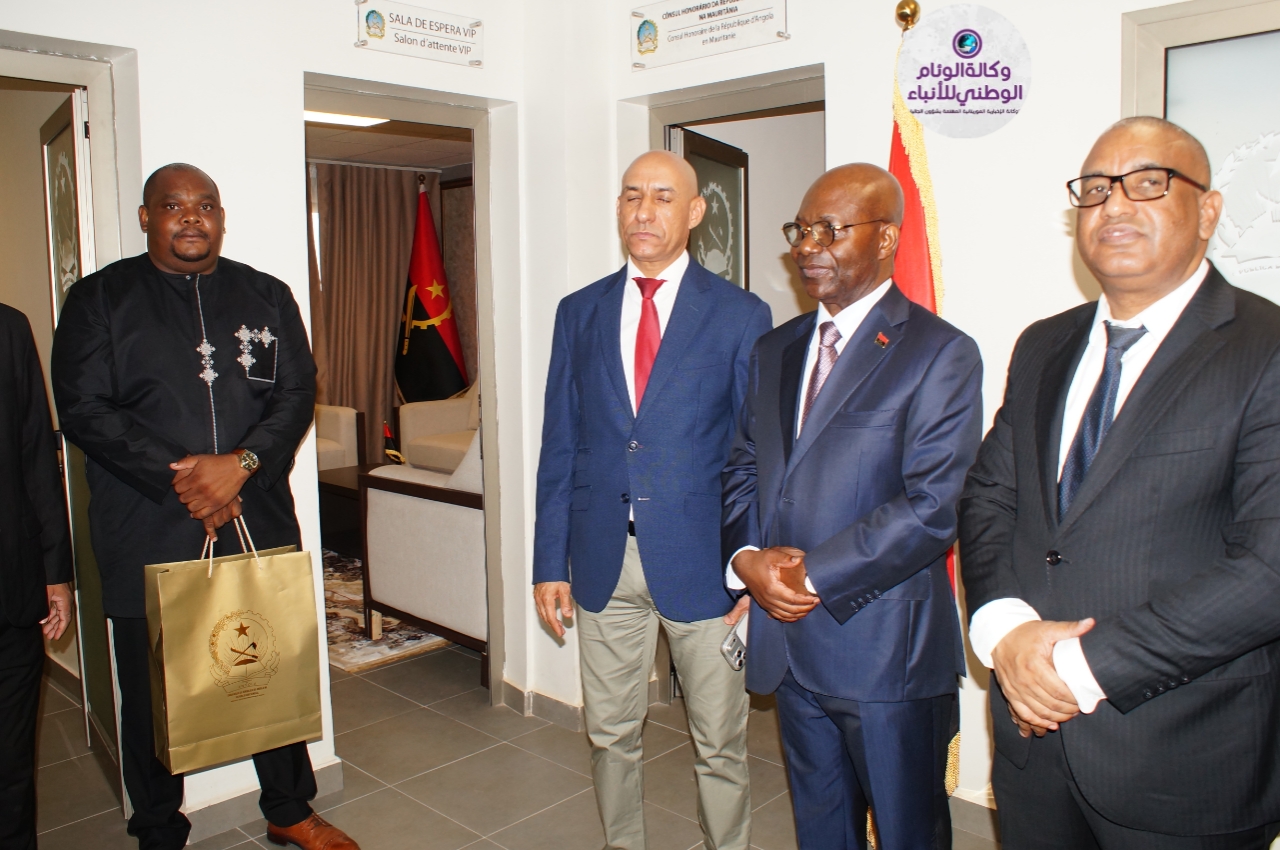 نواكشوط : أشرف على تدشين القنصلية الأنجولية في موريتانيا سعادة سفير انجولا في السينغال السيد أدرو بينتو رفقة صاحب السعادة السيد أحمدو ولد بوفشة القنصل الفخري لإنحولا في موريتانيا وذلك بحضور وفد رسمي من الشخصيات البارزة من أبرزها رئيس الجالية الموريتانية المقيمة في انكولا الحسن ولد جدو والنائب عن مقاطعة باركيول السيد موسي ولد الدده