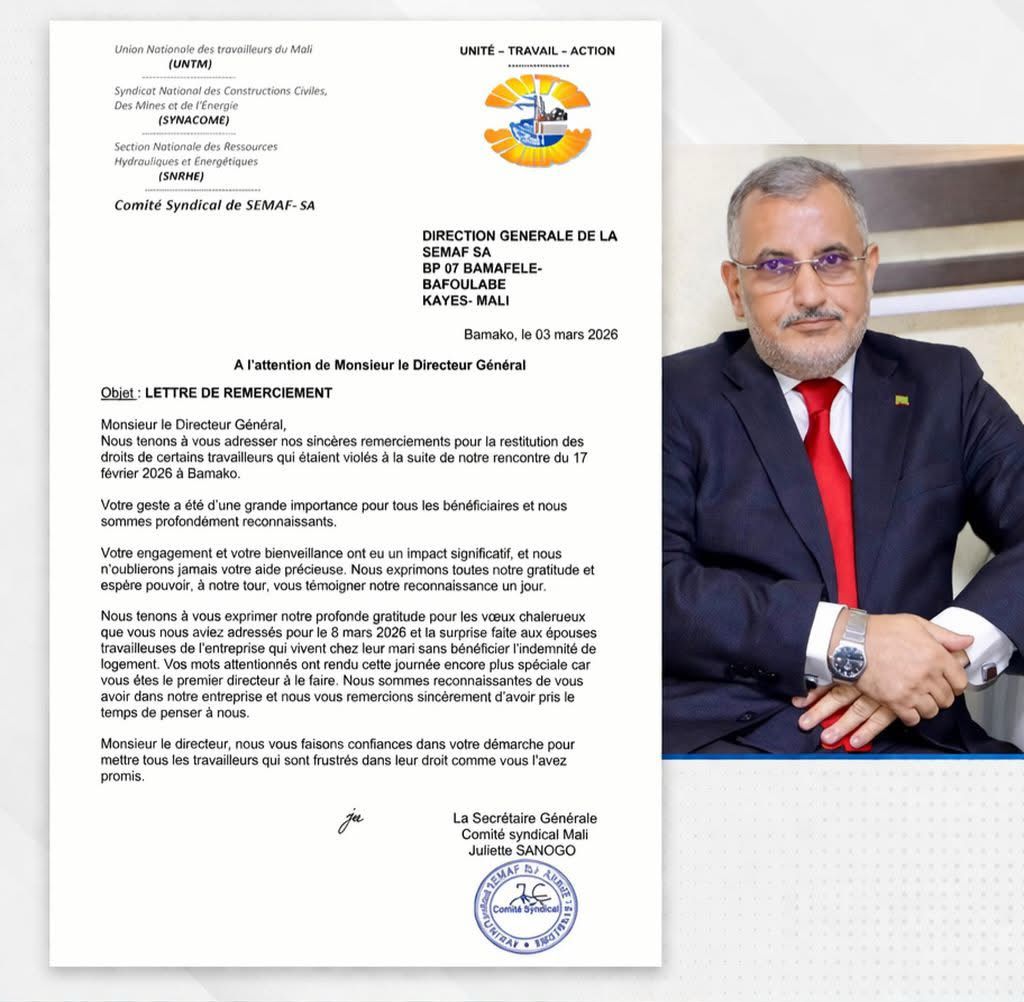وأوضحت اللجنة، في بيان رسمي، أن هذه التطورات جاءت عقب اجتماع عُقد في 17 فبراير الماضي بالعاصمة باماكو، حيث تم التوصل إلى تفاهمات ساهمت في تسوية بعض الملفات العالقة، وهو ما انعكس إيجاباً على أوضاع العمال المعنيين.