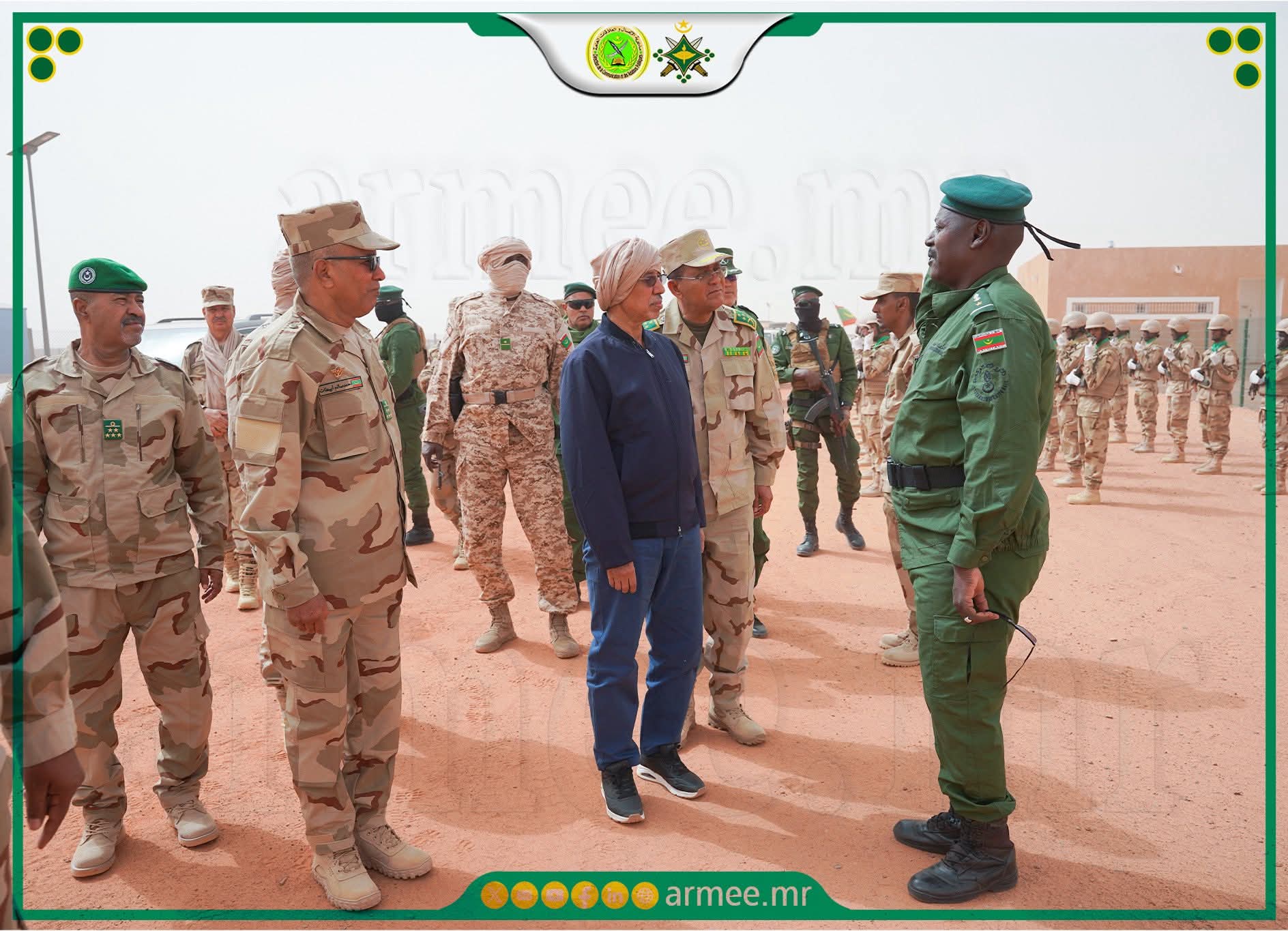 أدى وزير الدفاع وشؤون المتقاعدين وأولاد الشهداء؛ السيد حنن ولد سيدي، وقائد الأركان العامة للجيوش؛ الفريق محمد فال الرايس الرايس، صباح اليوم الثلاثاء 31 مارس 2026، زيارة تفقد واطلاع للكتيبة الموريتانية للقوة المشتركة لمجموعة دول الســـاحل الخمس.