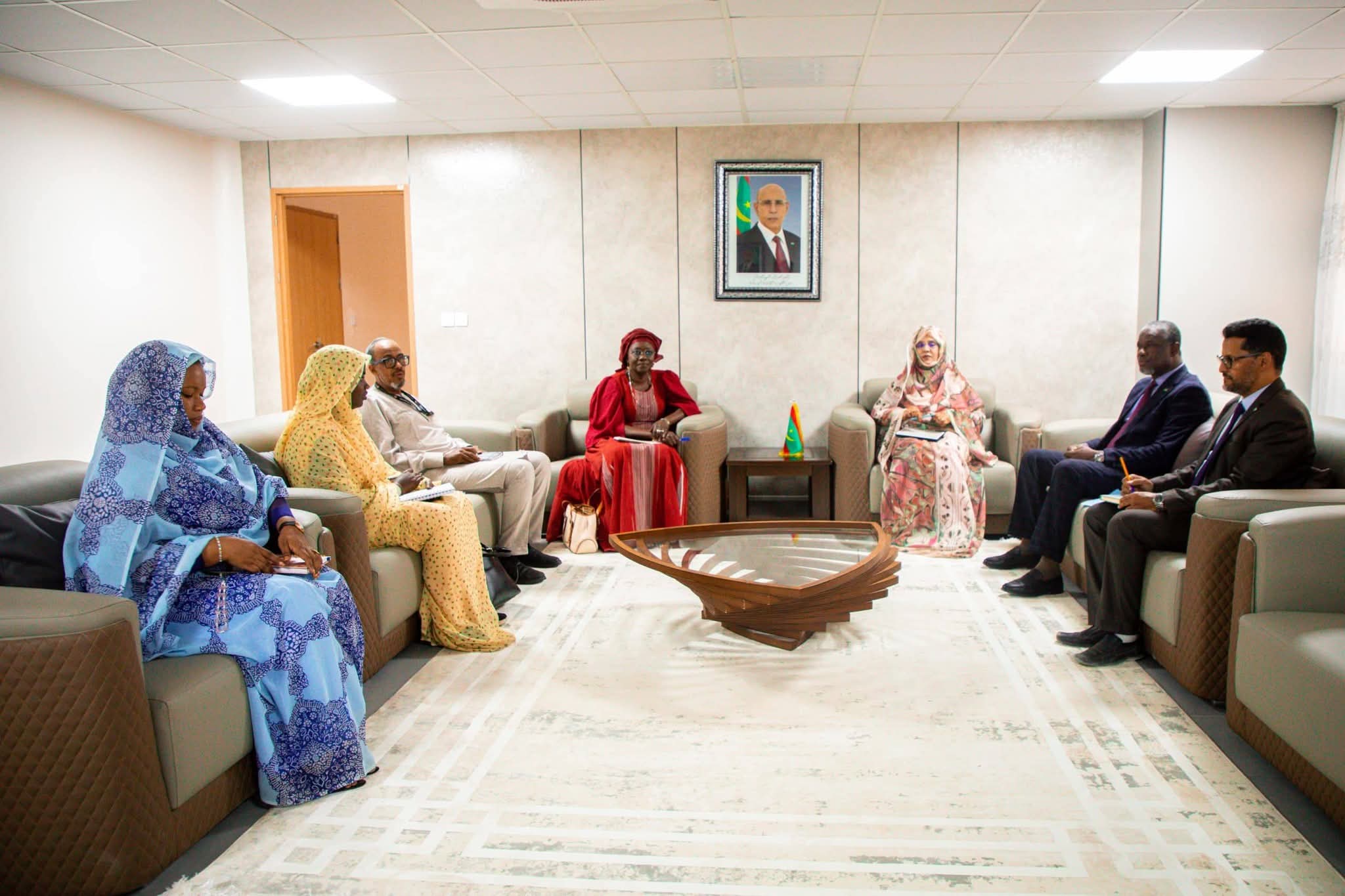 عقدت وزيرة التربية وإصلاح النظام التعليمي، اليوم الخميس 2 أبريل 2026، اجتماعًا مع وفد من صندوق الأمم المتحدة للسكان برئاسة الممثلة المقيمة في موريتانيا، أولغا سانكارا، لبحث سبل تعزيز التعاون بين الجانبين.