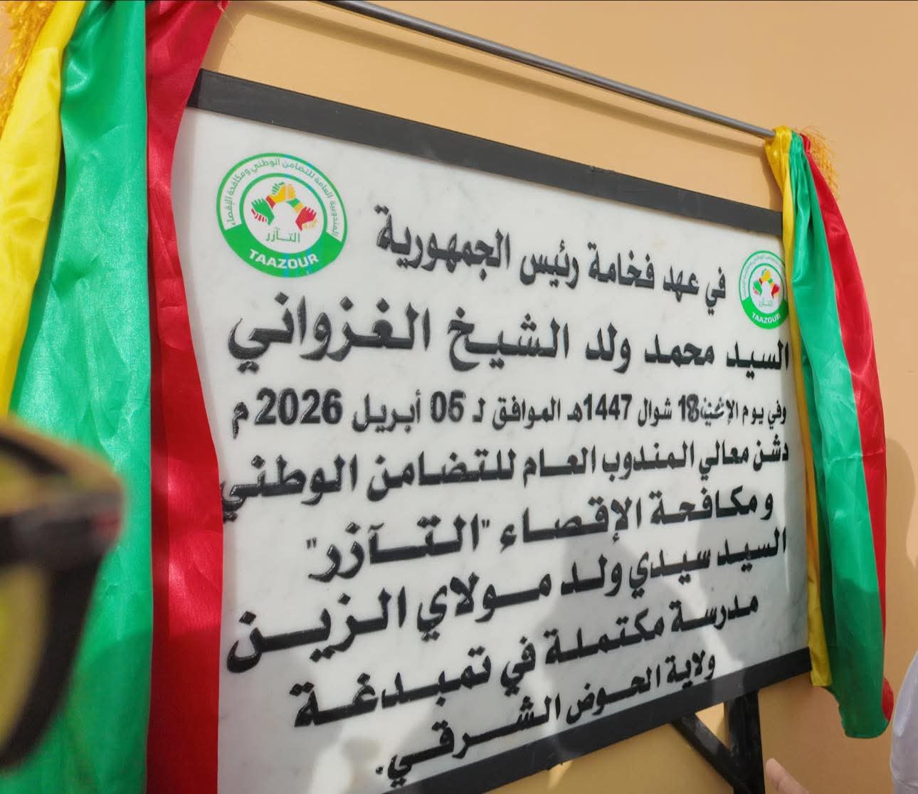 أشرف المندوب العام للتضامن الوطني ومكافحة الإقصاء «التآزر»، صباح اليوم، على تدشين مدرسة مكتملة بحي بغداد في مدينة تمبدغة، في إطار تنفيذ توجيهات رئيس الجمهورية السيد محمد ولد الشيخ الغزواني الهادفة إلى تحسين الولوج إلى الخدمات الأساسية، خاصة التعليم.