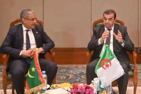 أجرى معالي وزير الطاقة والنفط السيد محمد ولد خالد، الاثنين 06 أفريل 2026، بالجزائر العاصمة، محادثات مع وزير الدولة، وزير المحروقات والمناجم السيد محمد عرقاب في إطار مشاركته ضمن وفد وزاري رفيع المستوى برئاسة معالي الوزير الأول السيد المختار ولد أجاي، وذلك بمناسبة انعقاد الدورة العشرين للجنة المشتركة الكبرى الجزائرية–الموريتانية للتعاون.