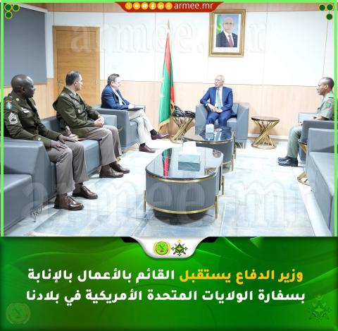 استقبل معالي وزير الدفاع وشؤون المتقاعدين وأولاد الشهداء؛ السيد حنن ولد سيدي، بمكتبه، اليوم الأربعاء 08 أبريل 2026، القائم بالأعمال بالإنابة بسفارة الولايات المتحدة الأمريكية في بلادنا؛ السيد جون ت آيس، رفقة الملحق العسكري بالسفارة؛ المقدم مالك شاه كرم.
