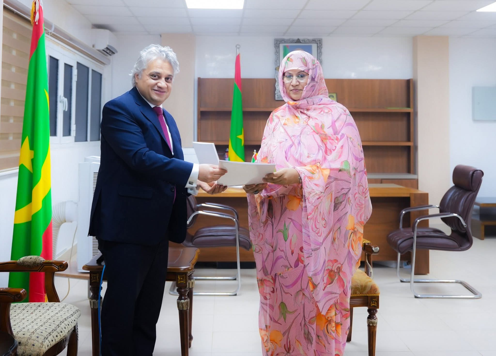 استقبلت وزيرة الإسكان والعمران والاستصلاح الترابي، السيدة الناها حمدي مكناس، اليوم الجمعة، سفير جمهورية مصر العربية المعتمد لدى موريتانيا، السيد أحمد محمد عبد الحميد طايع، حيث بحث الجانبان علاقات التعاون المشترك بين البلدين في مجالات تدخل القطاع.