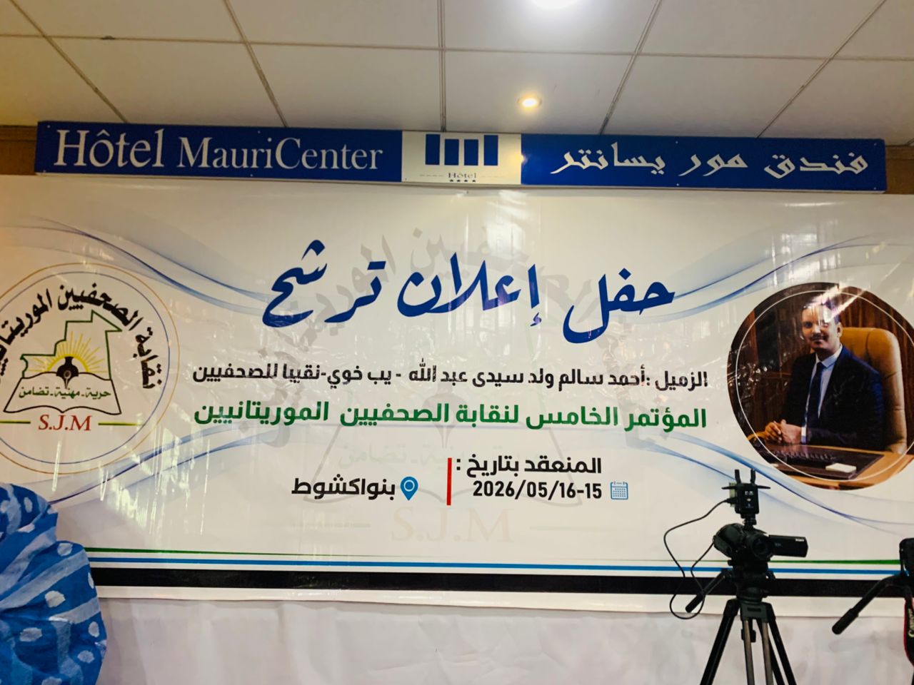 احتضن فندق موريسانتر، مساء اليوم، حفل إعلان ترشح الصحفي أحمد سالم ولد سيدي عبدالله لمنصب نقيب الصحفيين، وذلك بحضور النقيب أحمد طالب ولد المعلوم، والنقيب السابق أحمد سالم ولد الداه، إلى جانب عدد من أعضاء المكتب التنفيذي للنقابة.
