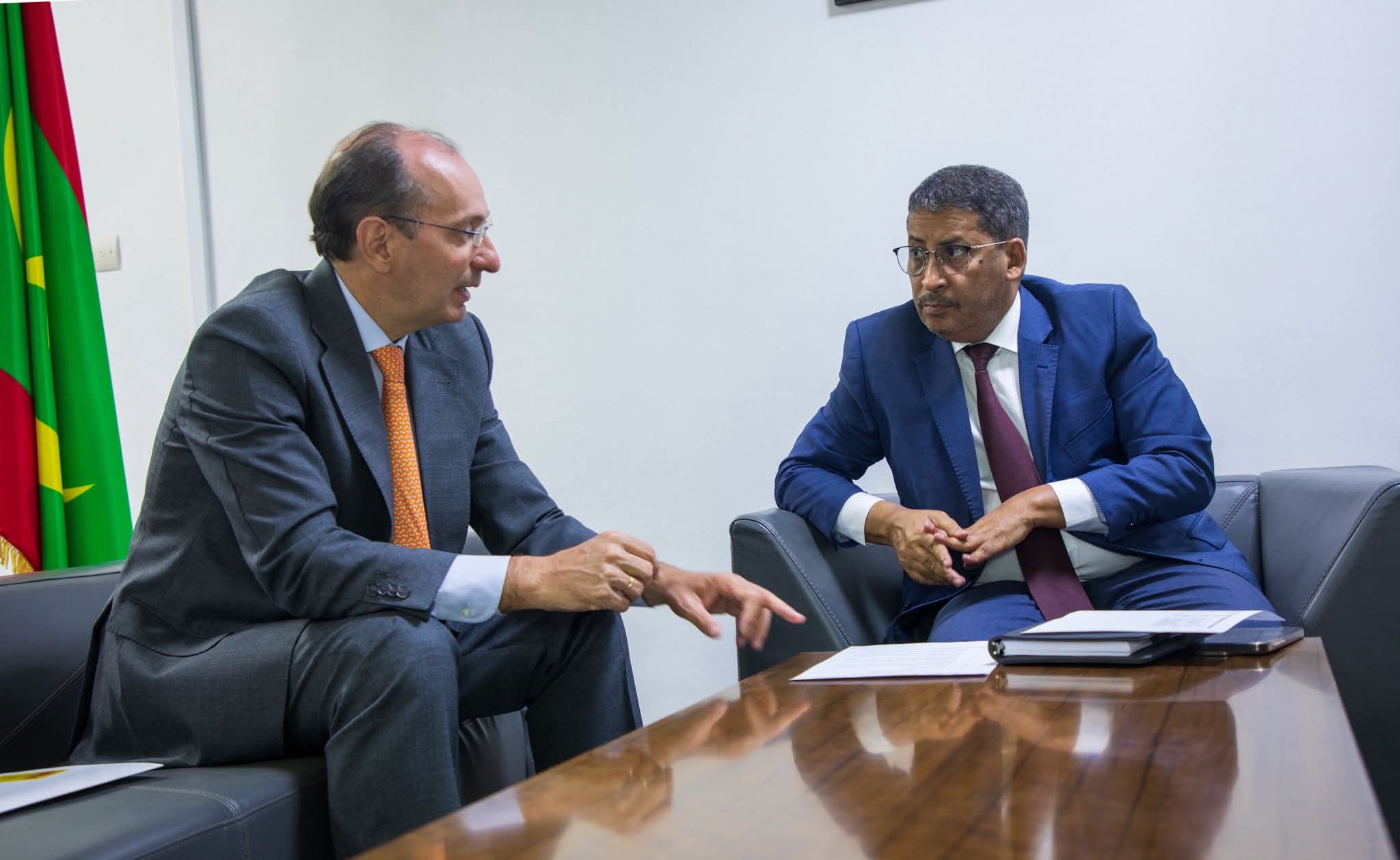 استقبل وزير التجهيز والنقل، السيد اعل ولد الفيرك، صباح اليوم بمكتبه في مباني الوزارة، سفير المملكة الإسبانية المعتمد لدى موريتانيا، سعادة السيد بابلو باربرا غوميز.