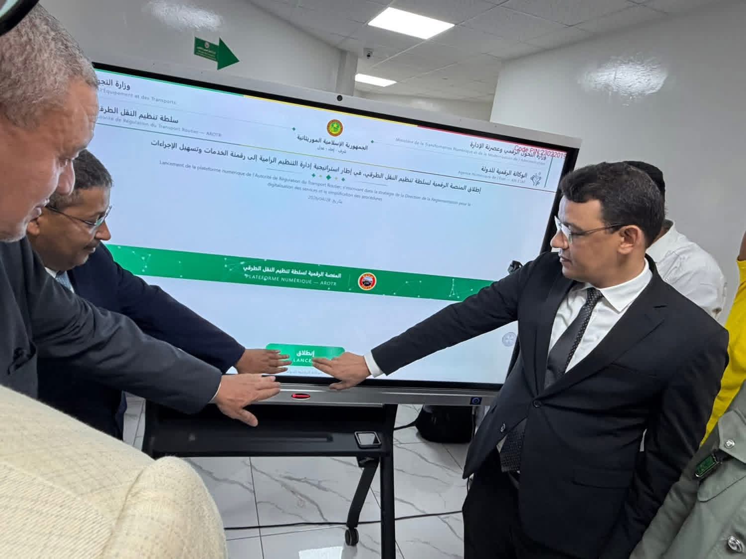 أشرف معالي وزير التجهيز والنقل، أعل ولد الفيرك، رفقة معالي وزير التحول الرقمي وعصرنة الإدارة، أحمد سالم ابده اشفغ، اليوم الثلاثاء بمقر سلطة تنظيم النقل الطرقي في نواكشوط، على إطلاق نظام رقمي متكامل لتحصيل الإتاوات المرتبطة بقطاع النقل الطرقي، وذلك في إطار تنفيذ التوجهات الحكومية الرامية إلى تحديث الإدارة العمومية وتسريع وتيرة التحول الرقمي.